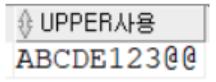 - 예시 1) SELECT UPPER('abcde123@@') AS UPPER사용
