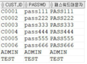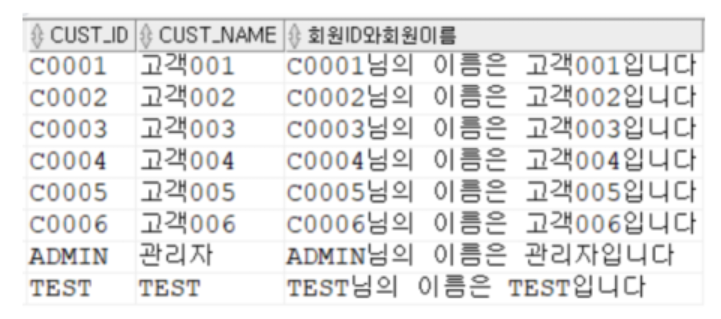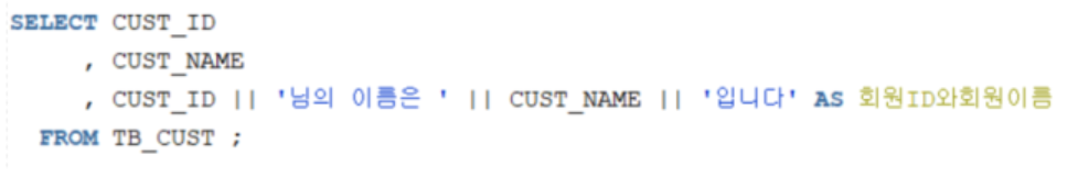 - 예시 2) SELECT CUST_ID , PASSWD , UPPER(PASSWD) AS 패스워드대문자