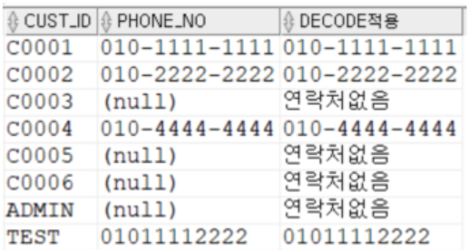 , DECODE (PHONE_NO, NULL , '연락처없음', PHONE_NO)  AS DECODE적용