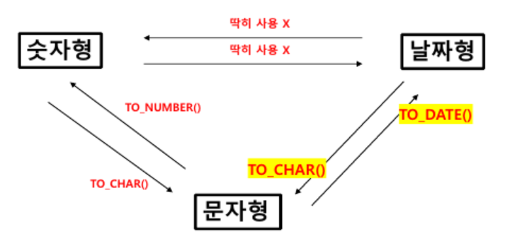 - 형 변환 우선순위 : 날짜형(1순위) > 숫자형 > 문자형