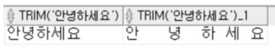 SELECT TRIM(' 안녕하세요 ') , TRIM( '안 녕 하 세 요 ')