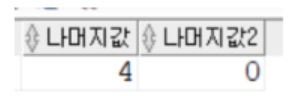- 출력 값 : 숫자형 리터럴 1개 -- 예시) 10 % 3 = 1