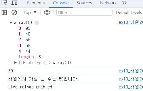 // 3. 배열 내 데이터를 비교하여 가장 큰 수를 변수에 저장
