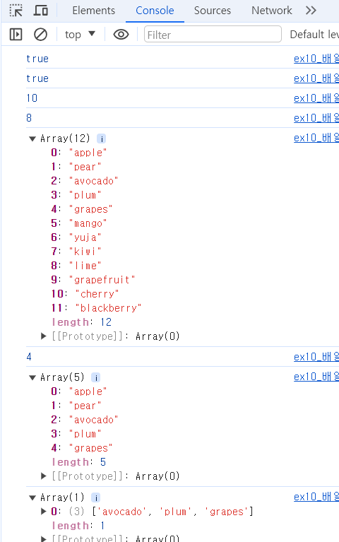 // 9. avocado부터 grapes 까지 가져와서 새로운 배열에 저장하기