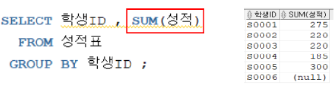 - 그룹 기준으로 입력한 expr 에 대해 합계값을 출력합니다.
