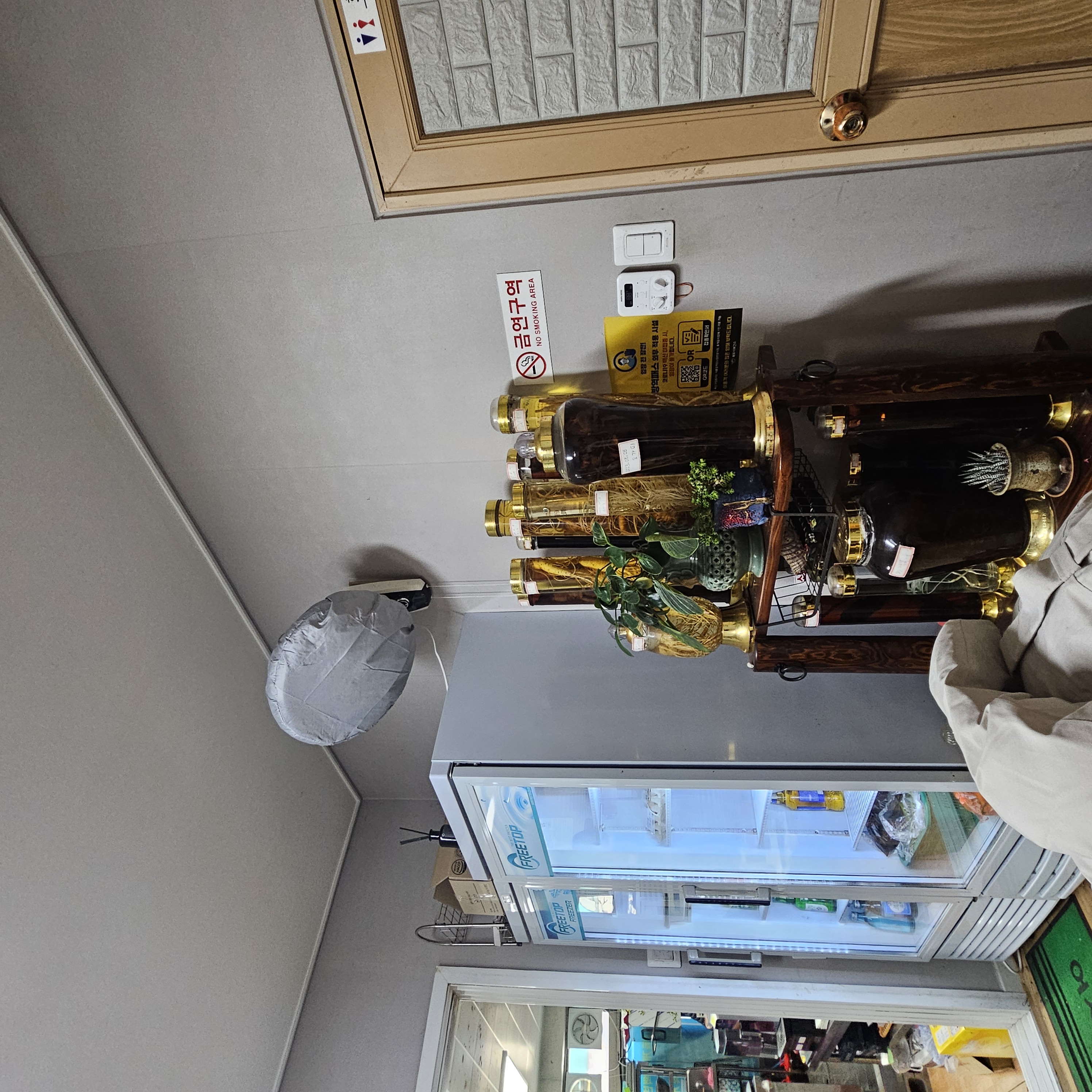 가게안에는 조그마한 화장실이 있었고 테이블은 안쪽 3개, 바깥쪽 3개 정도 있었어요.