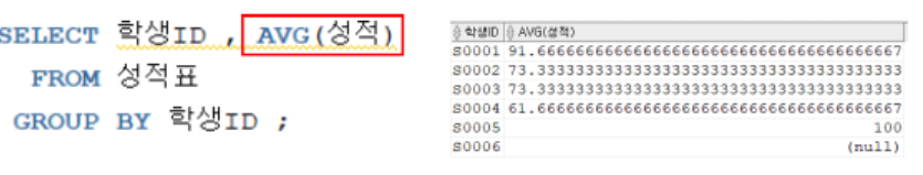 - NULL 데이터는 무시합니다. (모두 NULL 이면 NULL 출력)
