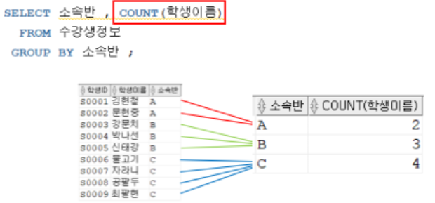 - 그루핑할 컬럼 기준으로 행의 개수를 출력합니다.