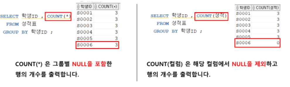 - 다른 집계함수와 달리 * 을 expr에 쓸 수 있습니다.