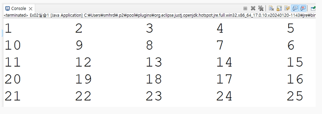 System.out.print((num[i][j]= a++)+"\t");