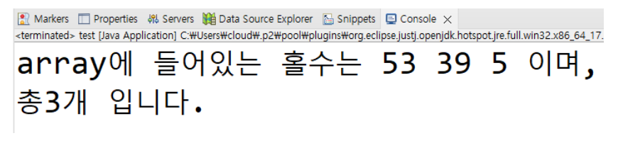 System.out.println("array에 들어 있는 홀수는");