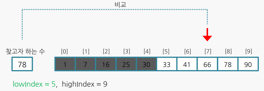 : 리스트의 중간 값을 정해 크고 작음을 비교해 검색하는 알고리즘 정렬된 리스트에 사용 할 수 있다.