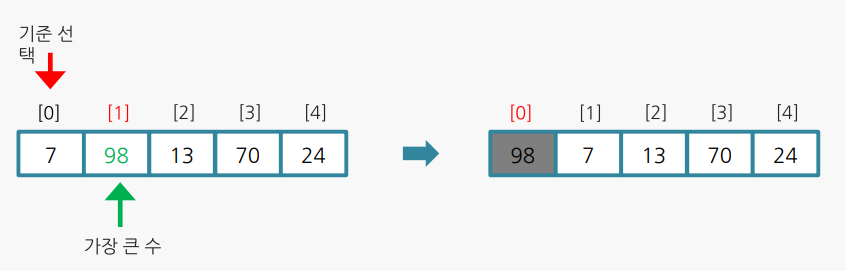 int temp = array[maxIndex]; // 자리변경하기