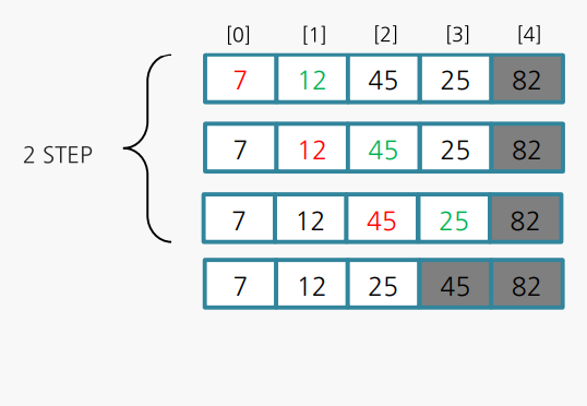: 두 인접한 원소를 비교하여 정렬하는 방법 속도는 느리지만 코드가 단순