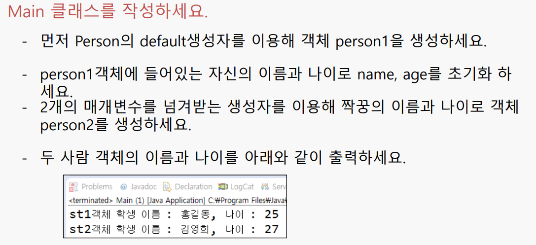 - 2명의 학생 데이터를 입력할 수 있도록 Student 객체 배열을 생성하세요.