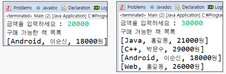 - 입력 받은 가격보다 저렴한 책의 목록과 가격을 아래와 같이 출력하세요