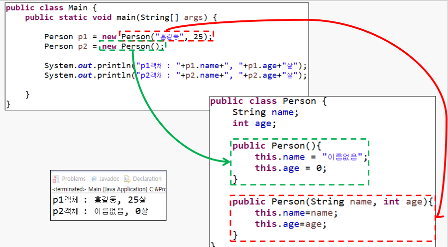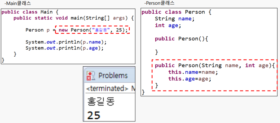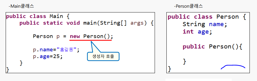 > 클래스에 생성자가 하나라도 존재하면 자동으로 기본 생성자가 생성되지 않음