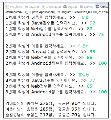 System.out.println(i+1+"번째 학생의 Android점수를 입력하세요 >>");