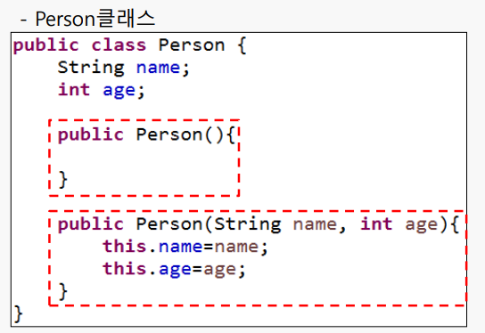 - 기본 생성자를 디폴트 생성자(default constructor)라고도 함