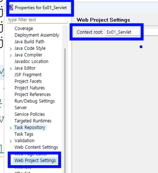 // 바꾸는 방법: 프로젝트 우-클릭 > properties > web project settings